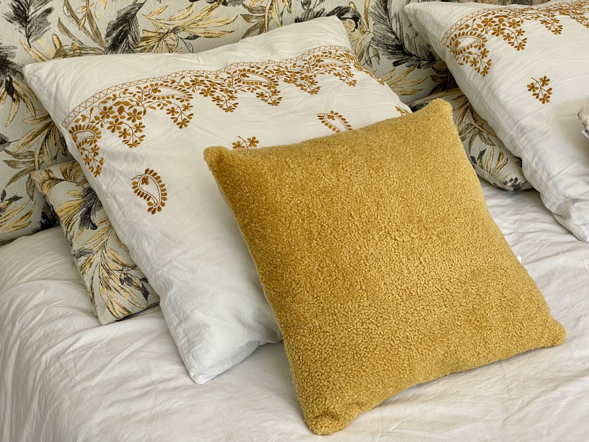 Coussin “Louison” fabriqué en peau de mouton poil court curly.