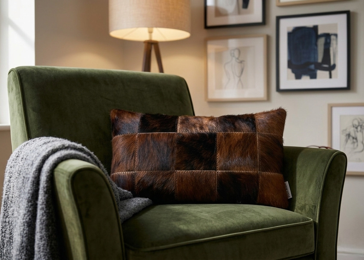 Ce coussin en peau de vache champêtre patchwork aux couleurs naturels très chic qui s’adapte sans aucun doute à tout type d’intérieur.