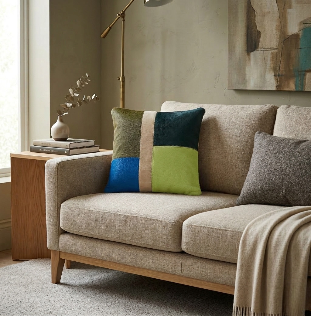 Coussin PICASSO fabriqué en véritable peau de vache française.