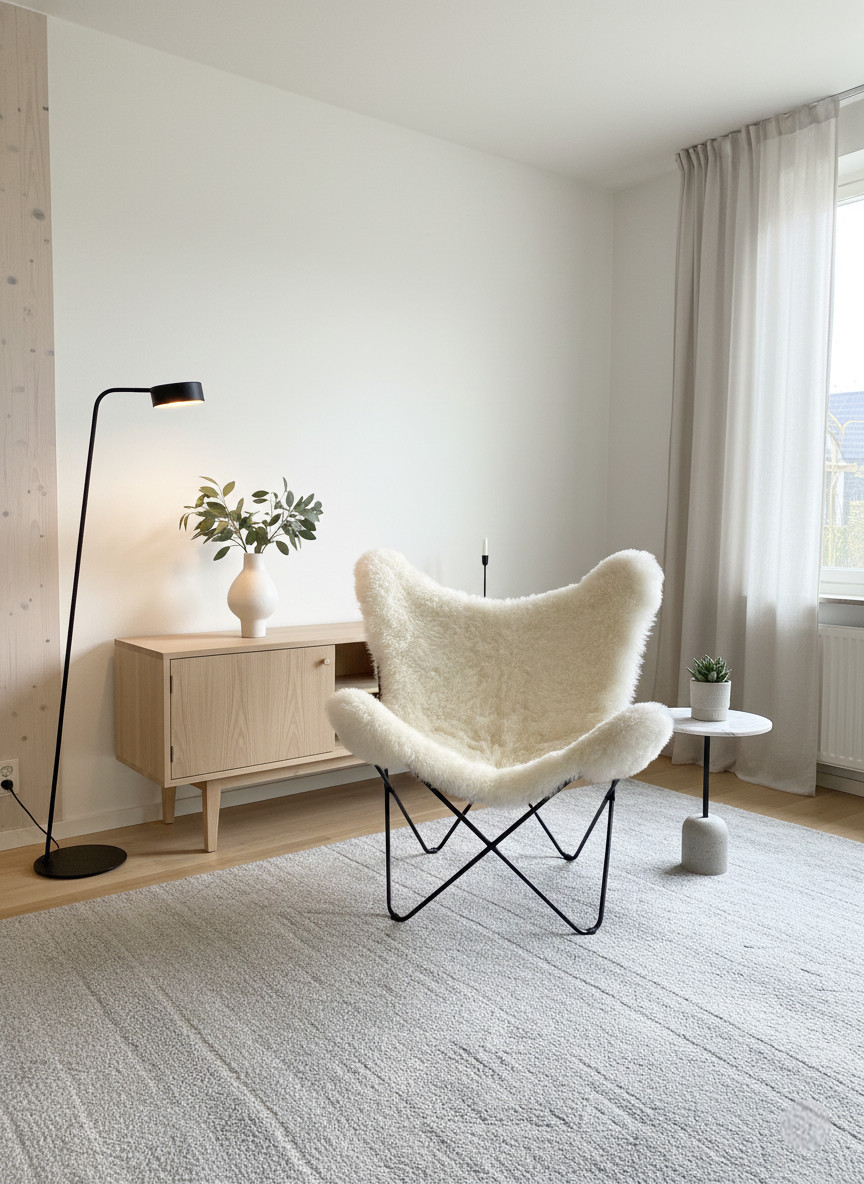 Ce fauteuil Butterfly en laine de mouton véritable certifié BKF sublimera votre intérieur qu’il soit classique, design ou vintage.