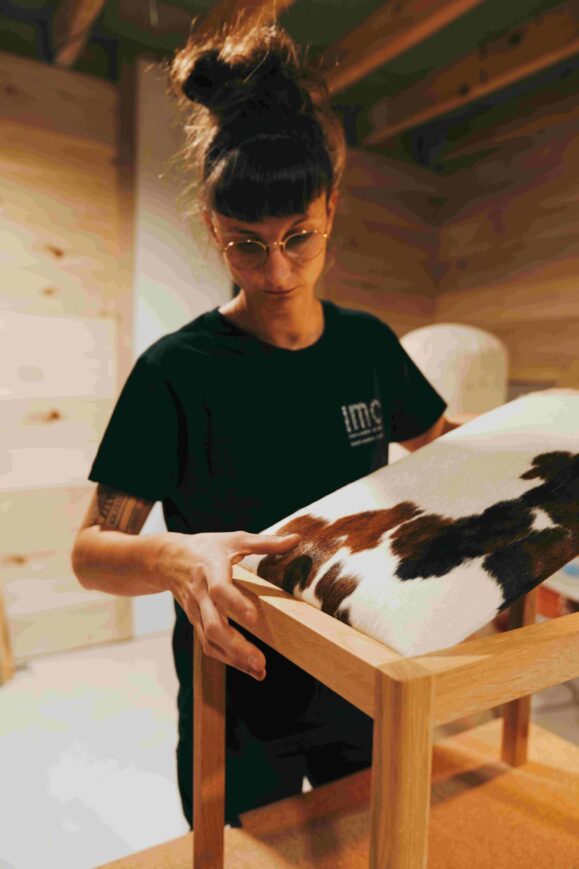 Chaque fauteuil est une pièce unique d’exception. Les motifs de la peau de vache varient d’un modèle à l’autre, offrant un caractère authentique à votre intérieur. Le cuir, issu de filières de recyclage, est travaillé dans le respect de la matière pour conserver sa douceur et sa résistance.