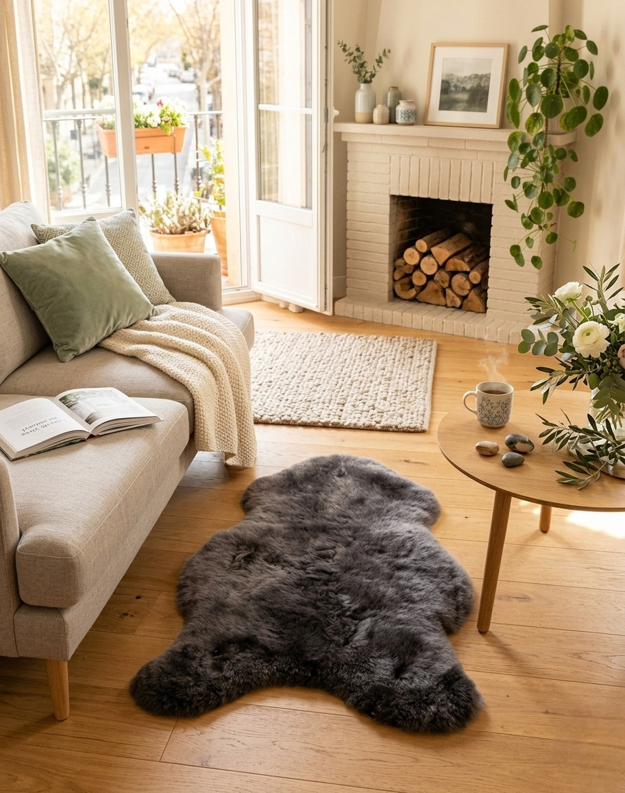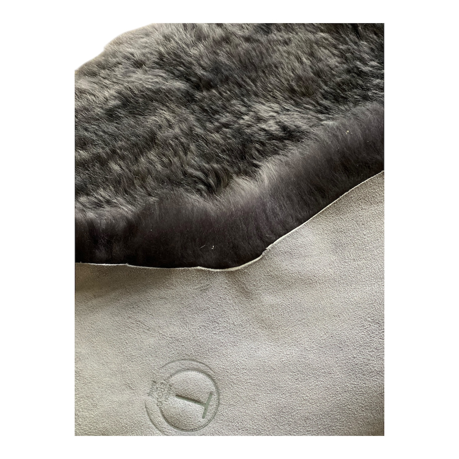 Véritable peau de mouton grise anthracite poil court.