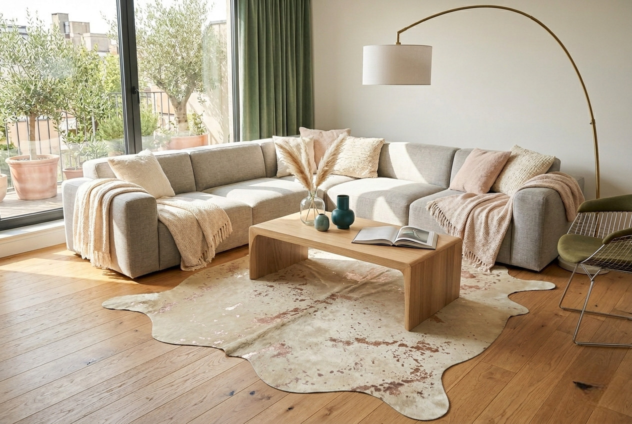Cette très jolie peau de vache beige acidulée bronze, sera parfaite dans votre intérieur contemporain. 100% cuir de vache française.