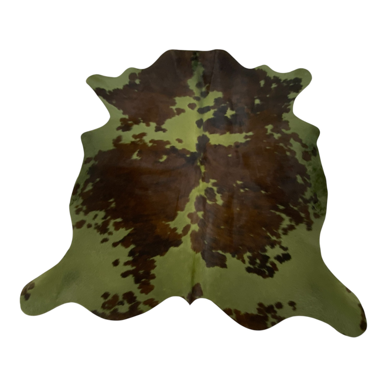 Véritable peau de vache normande ou montbéliarde à la robe caractéristique plus ou moins de tachetée brun, caramel ou bringés sur fond blanc. Pour lui donner cette originalité, nous lui avons simplement appliqué une teinture kaki.