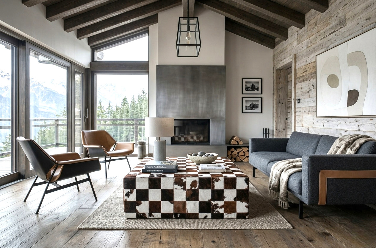 Table peau de vache patchwork normande fabriqué en carré de 10×10 cm vache naturelle normande et garni avec une mousse haute densité.