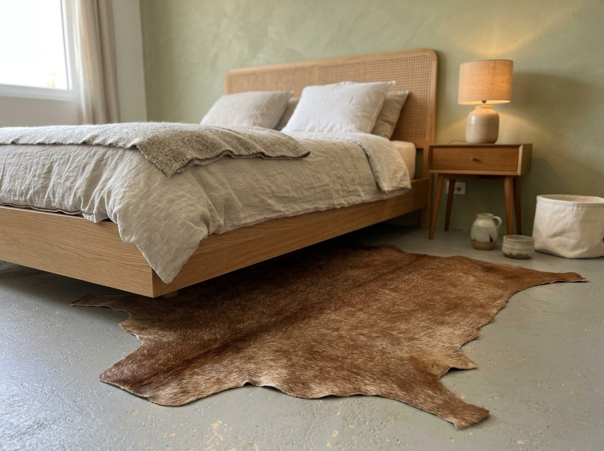 Le petit tapis chèvre naturel de couleur marron pour une décoration rustique chic.